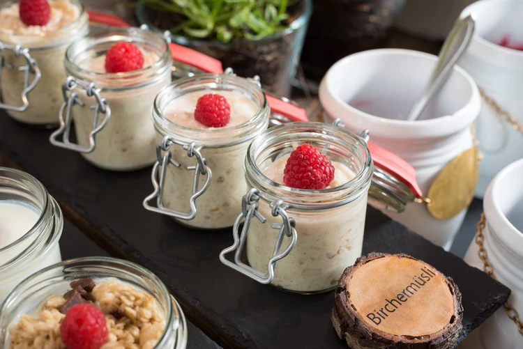 Zu den Hauptmahlzeiten können Sie zwischen verschiedenen Menüs, kalten und warmen Speisen wählen. Unsere Küche ist von regionalen und saisonalen Zutaten geprägt. Alle Mahlzeiten werden vom Küchenteam frisch zubereitet. Und auch auf spezielle Essenswünsche sind wir eingestellt – egal ob vegan, gluten- oder lactosefrei.